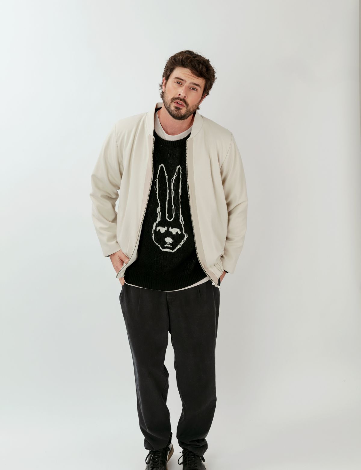 Bomber de silueta clásica con pretina fruncida en basta y puños.