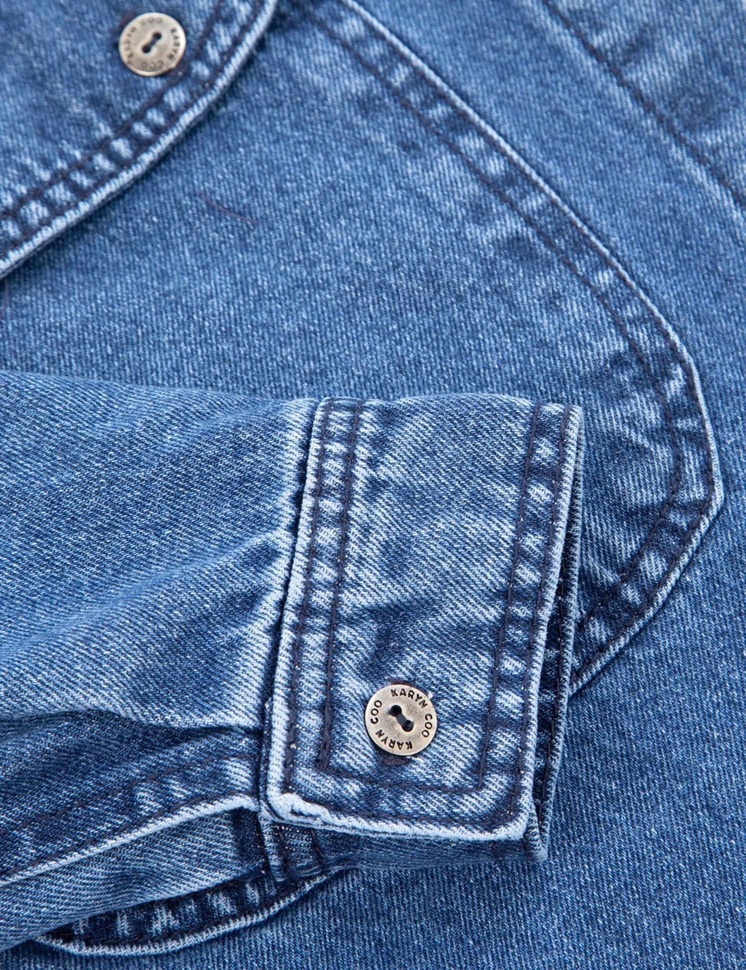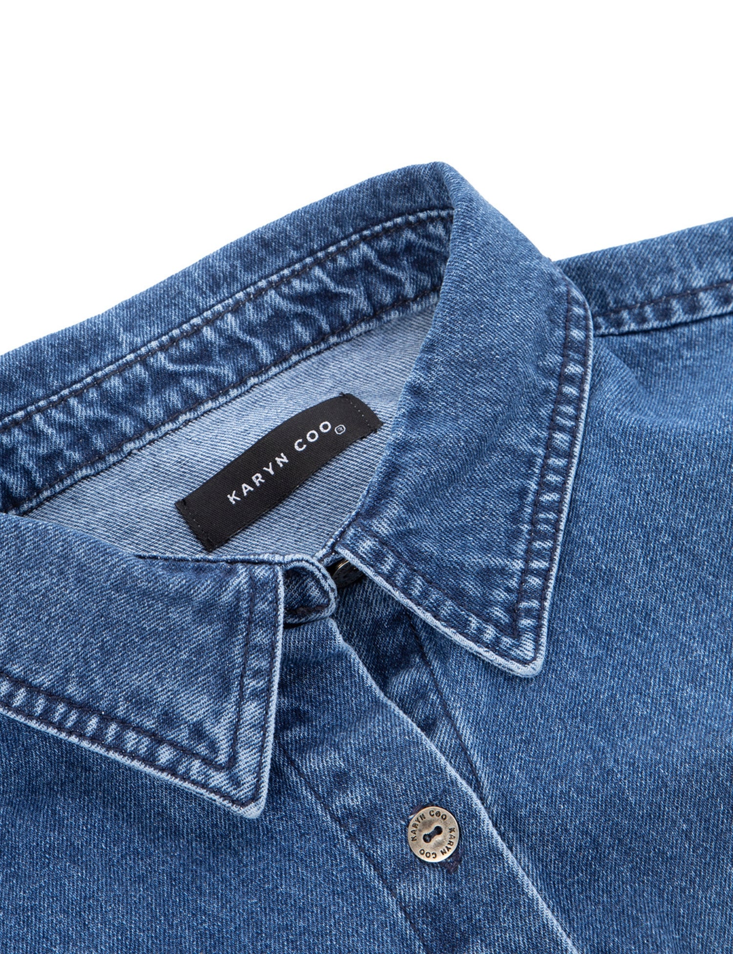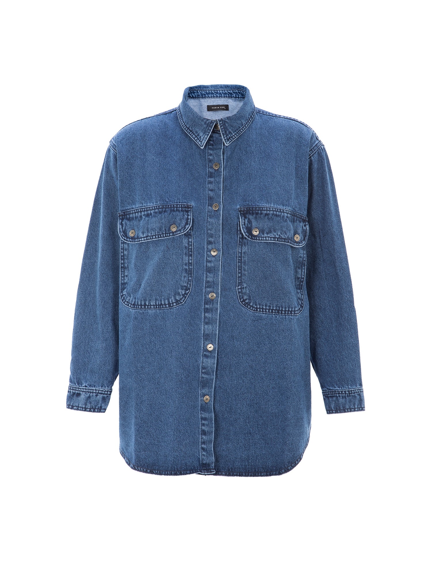 La camisa Carolina es una prenda fabricada en denim de algodón orgánico y con fibras recicladas. De diseño oversize y envolvente, hombro caído y detalle de bolsillos tipo parche de tamaño oversize con pequeño botón envejecido en cada tapeta. Esta camisa es ideal para usarla como sobre todo o también como vestido complementando con botas o zapatillas. Estamos seguras que esta prenda estará acompañándote por muchas temporadas debido a su versatilidad, nada como una buena prenda de denim.