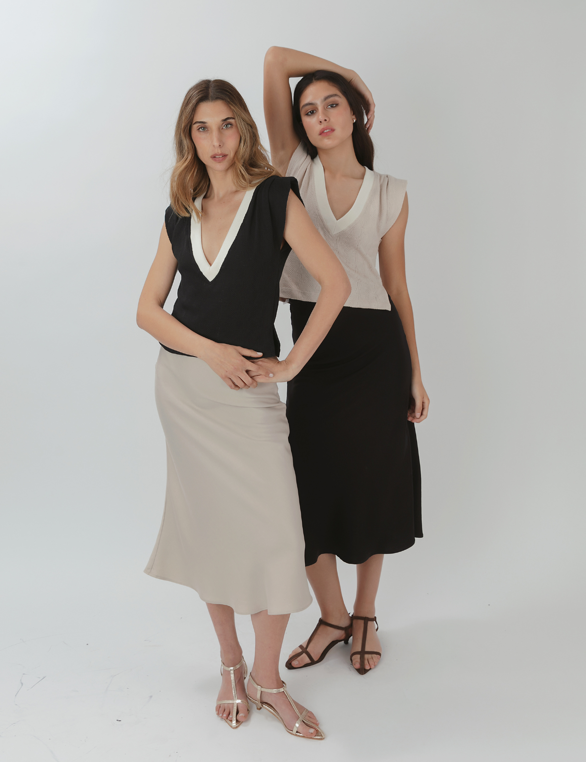 • Polera tejida Karyn Coo en hilo de algodón 100%.