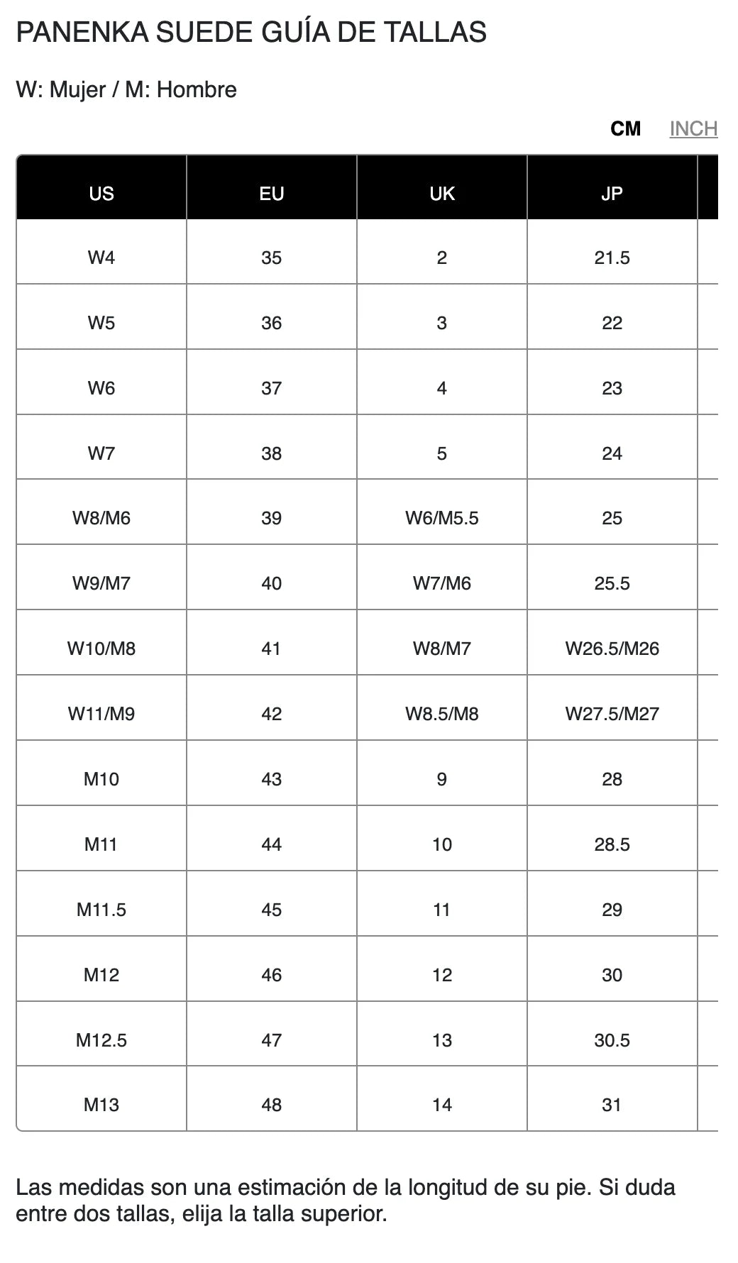 Guía de tallas