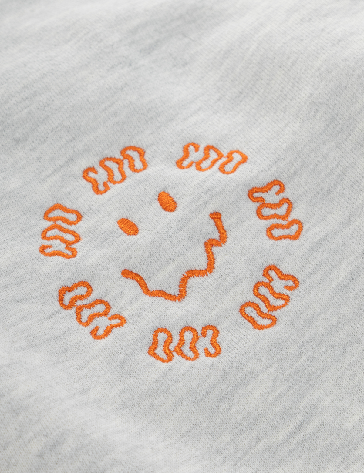 • Bordado frontal “cara derretida” en hilo naranja según la foto.