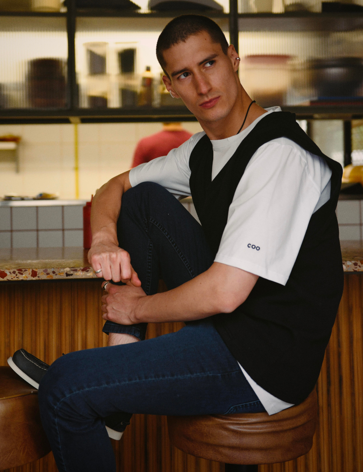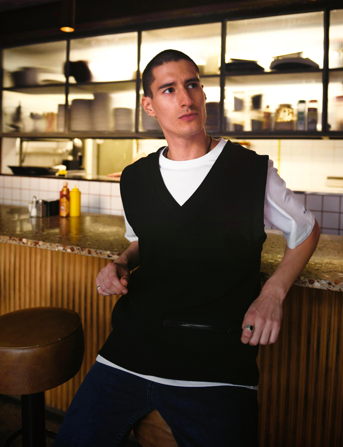 El chaleco Paul es un diseño holgado para usarlo arriba de una camisa o polera básica siendo una prenda entretenida para salir de lo clásico. Fabricado en un textil texturado con cuello y sisa en rib de algodón y un bolsillo con cierre diente de perro negro en el costado derecho.