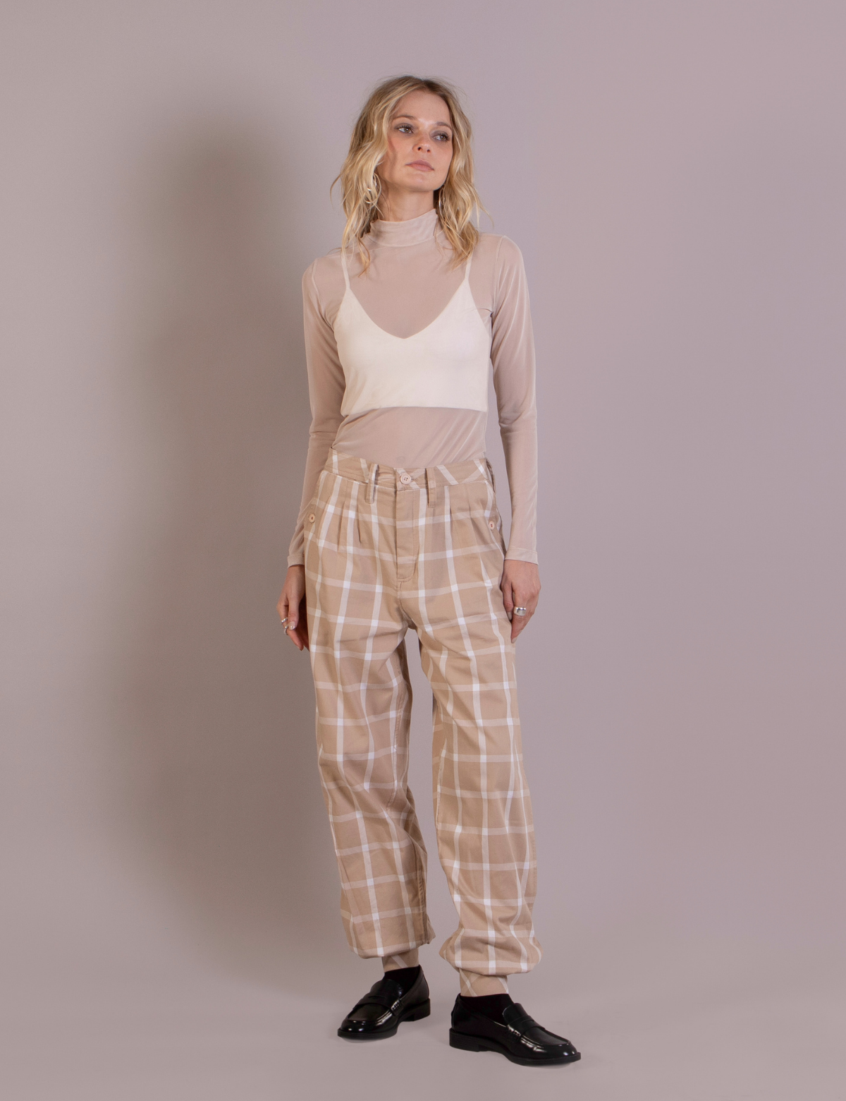 • Cuello alto tipo beatle.
