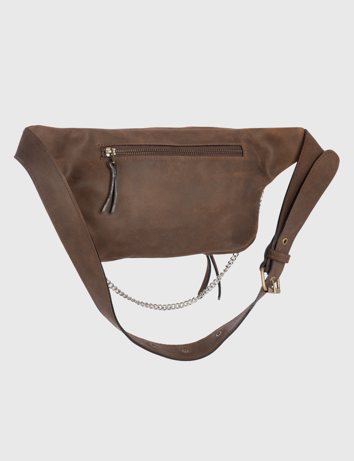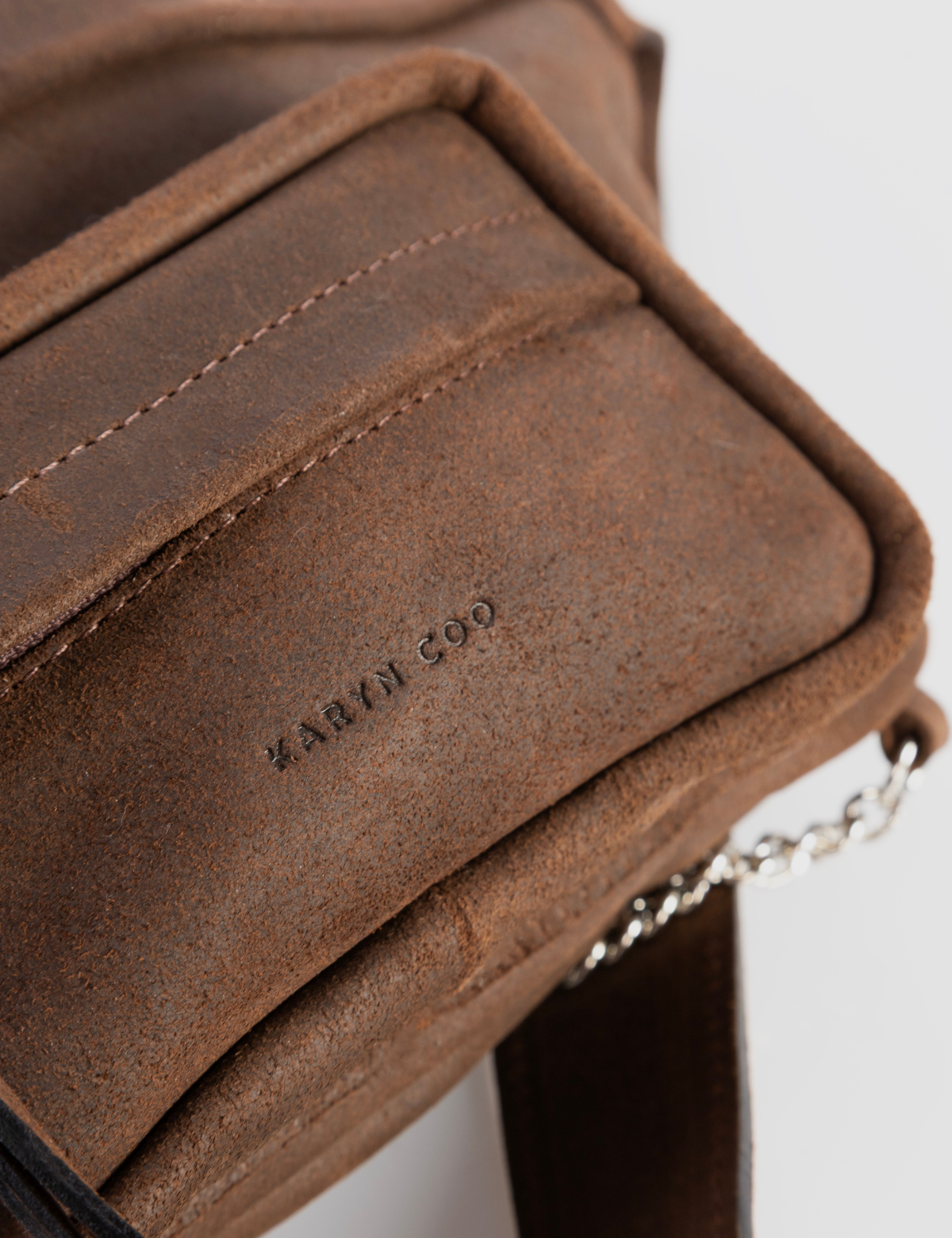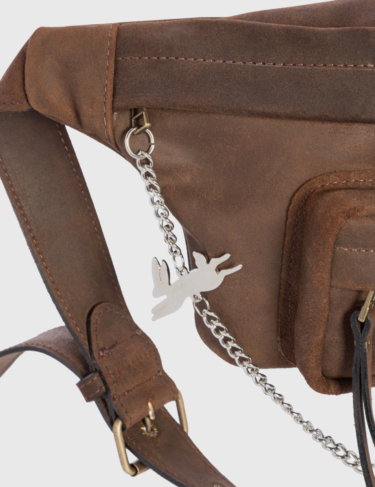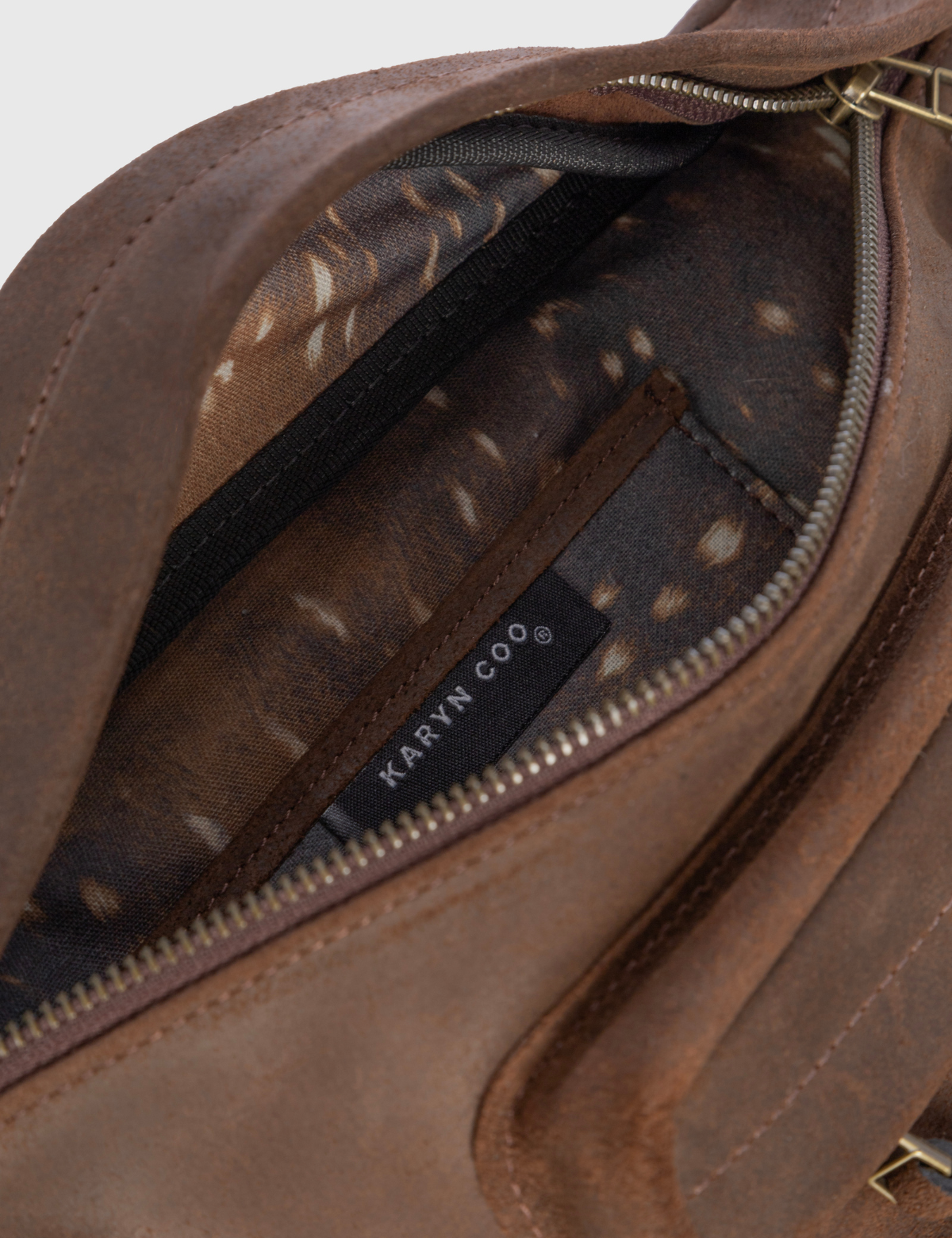 • Banano confeccionado en cuero reno color moro con acabado wax, que aporta profundidad visual, textura suave y un efecto levemente envejecido.