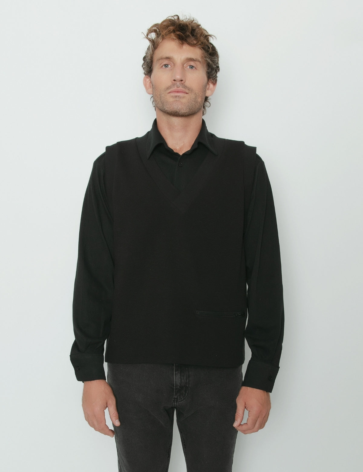 El chaleco Paul es un diseño holgado para usarlo arriba de una camisa o polera básica siendo una prenda entretenida para salir de lo clásico. Fabricado en un textil texturado con cuello y sisa en rib de algodón y un bolsillo con cierre diente de perro negro en el costado derecho.