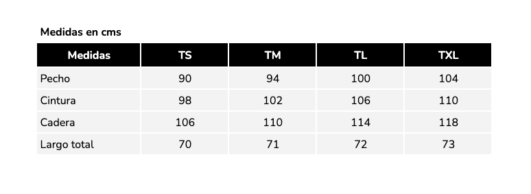 Disponible en: Talla S, M, L y XL