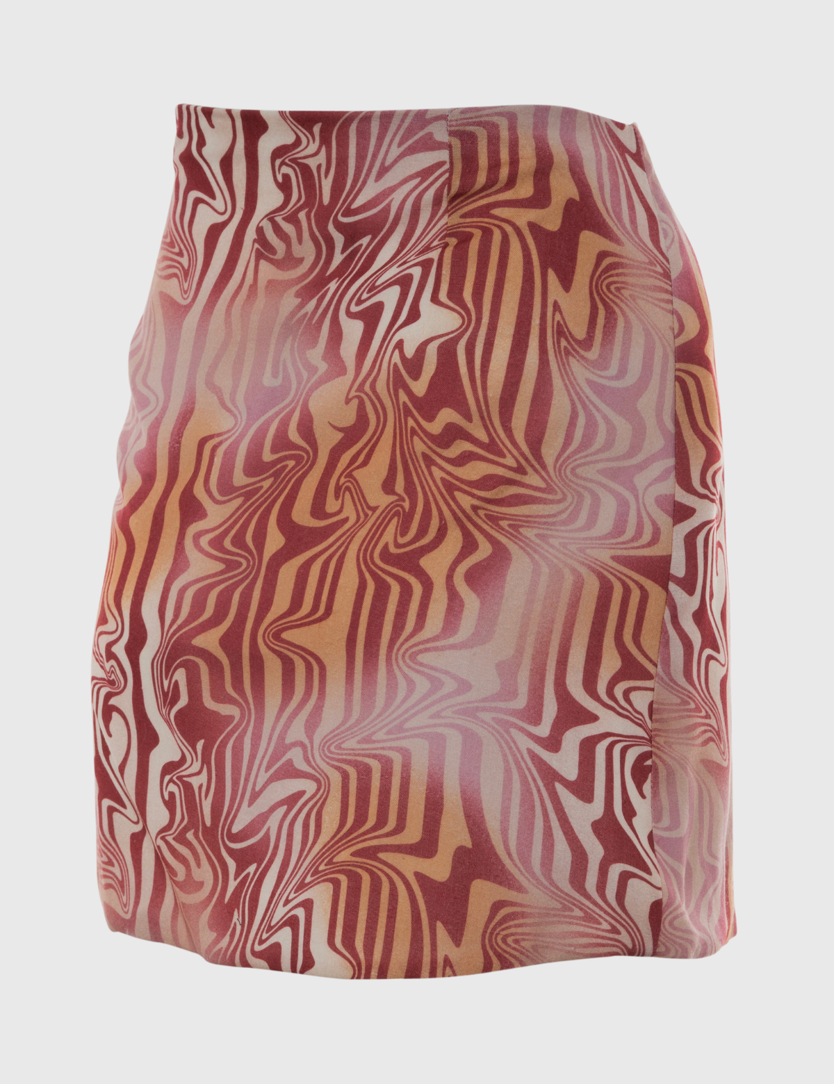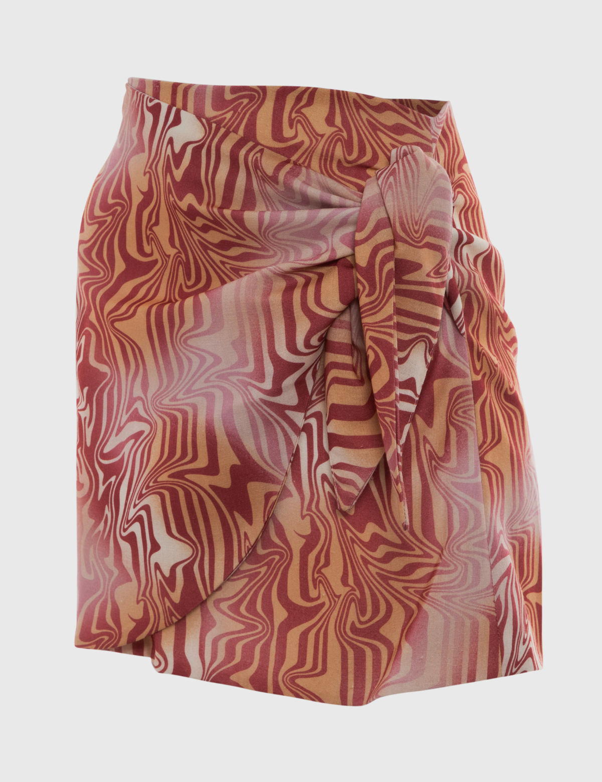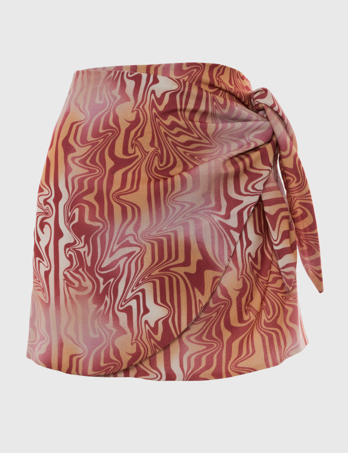 Mini falda Karyn Coo confeccionada en viscosa ligera estampada con motivo psicodélico en tonos cálidos.