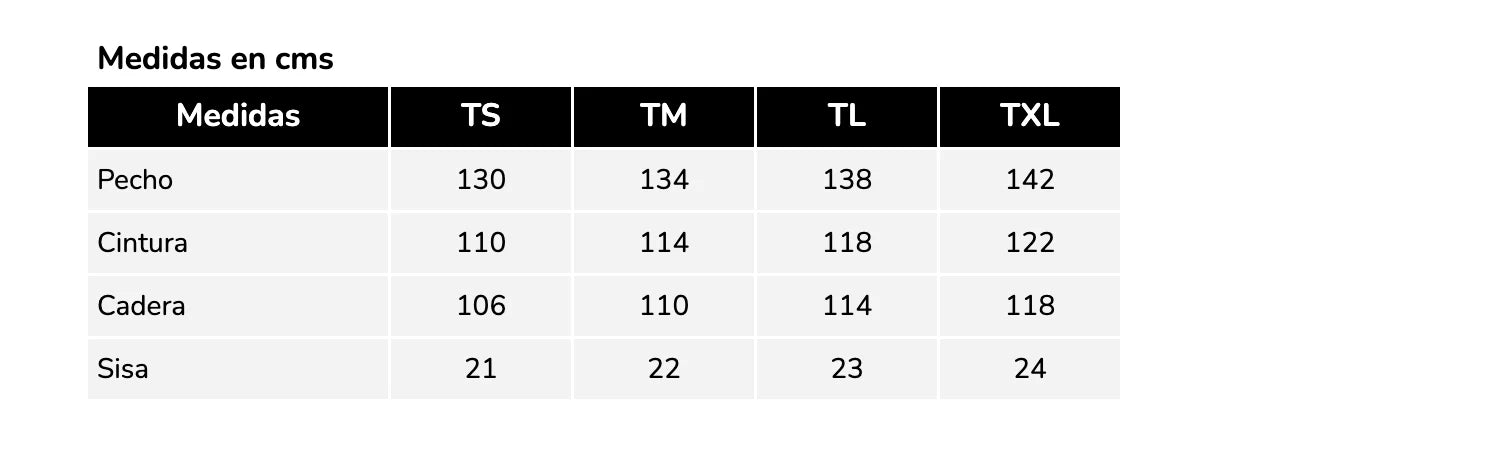 Disponible en: Talla S, Talla M, Talla L y Talla XL